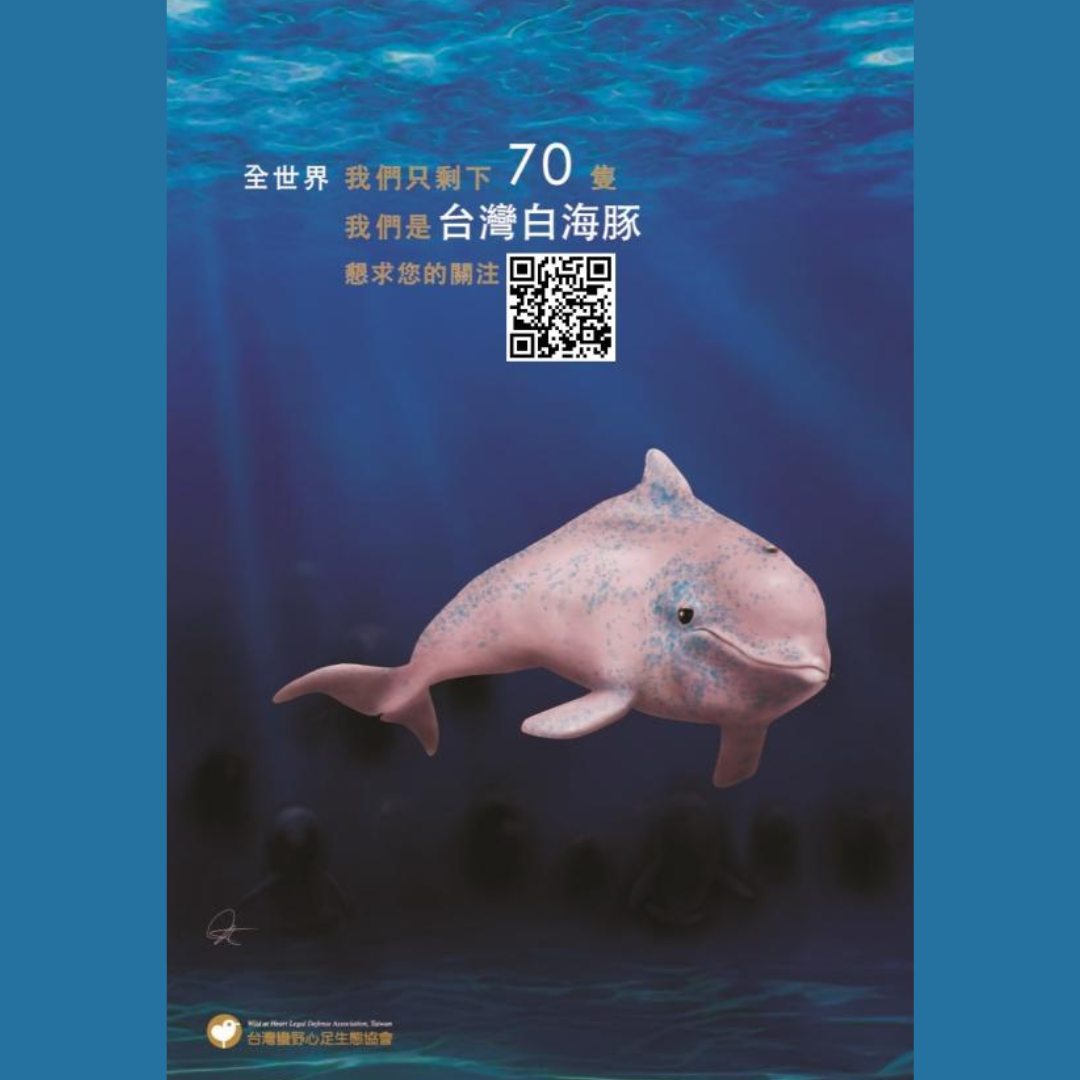 有些生命 現在不救 以後就沒機會了 ─ 我們是「台灣白海豚」,全世界只剩70隻 「台灣白海豚」,擁有特殊的斑點與體色,並長久定棲於台灣西部近海,是台灣的特有亞種。然而,台灣西部沿海汙染及日益嚴重的棲地破壞,這群粉白精靈的淒美「豚」生,正面臨及大的生存威脅,目前族群數量不到70隻。 台灣白海豚平均活動水深為15米(不超過30米)