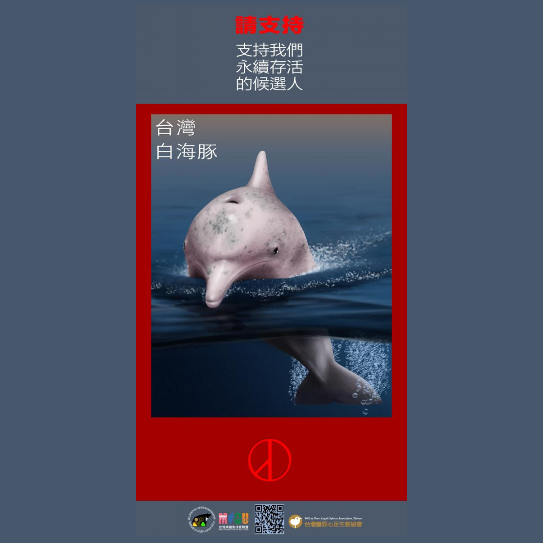 【白海豚、石虎也希望能投票】 《2018年縣市大選,白海豚、石虎保育運動宣言》 敬愛的縣市長、議員候選人您好,首先預祝您高票當選。 為了保護台灣瀕臨滅絕的白海豚與石虎,學術單位及保育團體共同發起保育連署,呼籲參與2018年地方首長、民意代表選舉的候選人,重視在地環境保育與農漁村永續發展等議題。 台灣海峽的生